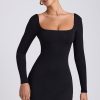 A feminine design: Hope features a curved square neckline, a low, open back with strappy detailing, and a floaty a-line skirt. The long-sleeve mini dress is designed in our innovative TENCEL™ Modal material, which is biodegradable, compostable, and sourced sustainably from beechwood trees.