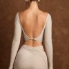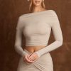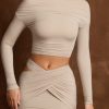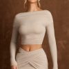 New season, new looks. The ideal day-to-night styling piece, the Dova crop top is cut to a high-neck silhouette and turns to reveal a statement open back, complete with twisted detailing. It’s crafted from premium semi-sheer jersey with a touch of stretch and elevated with all-over ruching that creates a draped effect.