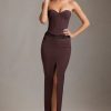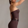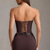 Pinstripe Lace-Up Corset Top in Chocolate Brown