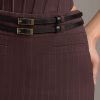 Pinstripe Low-Rise Maxi Skirt in Chocolate Brown