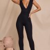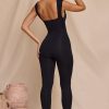 Effortless silhouettes. Designed in our figure-enhancing modal fabric that’s supportive, stretchy and undeniably flattering, the Romana jumpsuit has a sexy plunge neckline with supportive wide shoulder straps. Complete with a ruched waist and full length, split flare trousers.