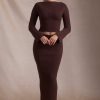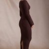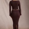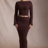 Ribbed-Knit Foldover Maxi Skirt in Espresso