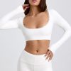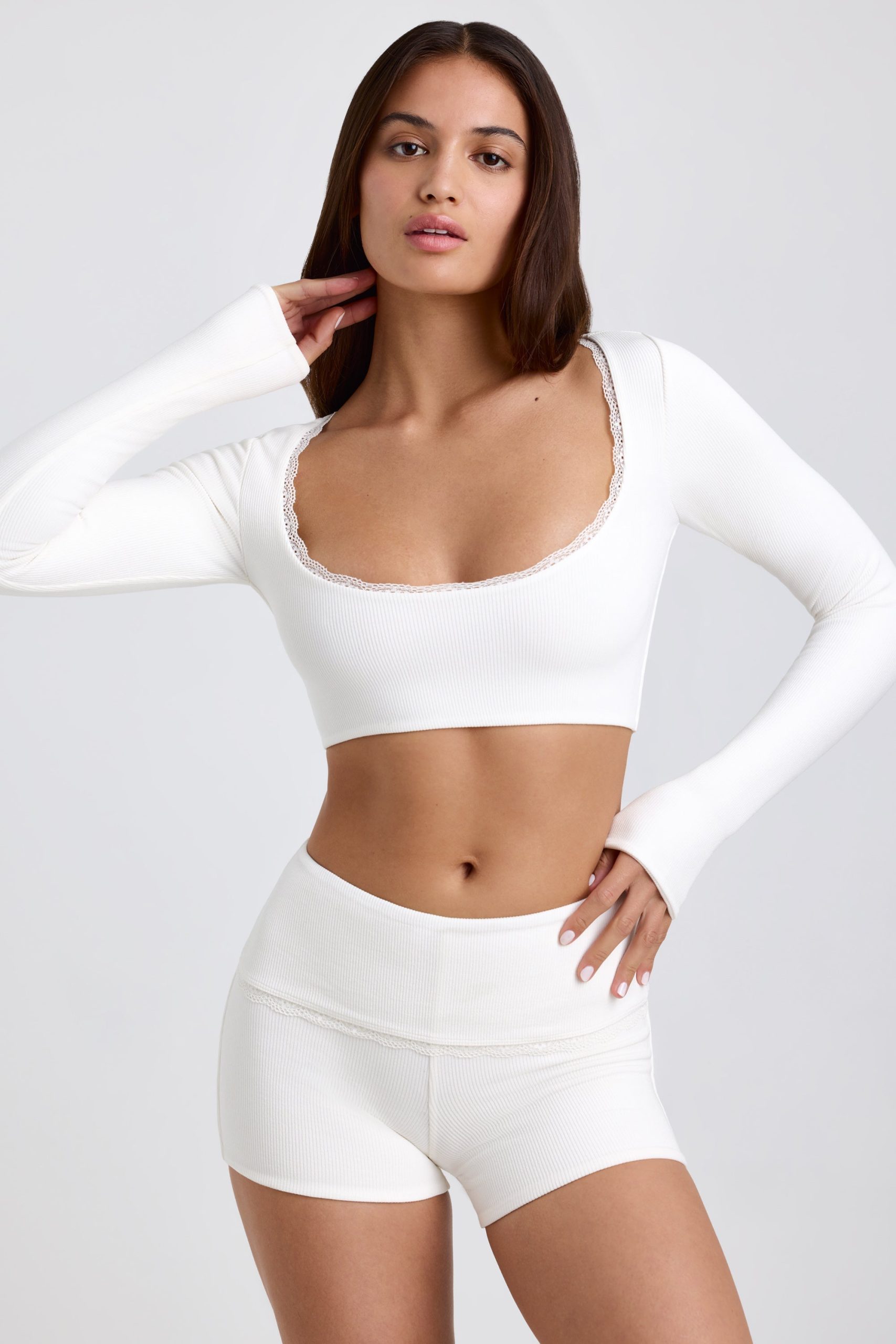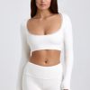 The Calla crop top is a coquette-inspired twist on a classic everyday staple. Made from our dual-layered stretch-ribbed fabric with TENCEL™ Modal fibres that feel twice as soft as cotton, it’s shaped to a curved silhouette and features a scoop neckline traced with tonal picot lace trims, echoing the collection’s whimsical vibe.