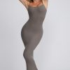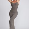 Ribbed Modal Square Neck Maxi Dress in Grey