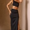 Chic separates. A versatile styling staple, the Ishaana maxi skirt is crafted from lustrous satin with a touch of stretch. Designed for a mid-rise fit, it’s cut to an asymmetric silhouette with functional drawcord detailing at one side for a custom fit and a thigh-high side split for maximum impact. It pairs perfectly with our Brisa crop top in a coordinating hue.