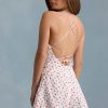 Ruched Backless Playsuit in Cherry Print