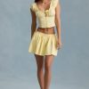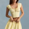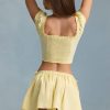 Ruched Cotton-Poplin Corset Top in Lemon Yellow