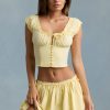 Your new go-to for cute and casual days. Blending comfort and charm, the Maira mini skirt features a full silhouette, inspired by classic styles. Crafted from lightweight cotton poplin with a touch of stretch, it’s elevated with adjustable drawstring side ties and hidden pockets. The waistband is traced with a delicate lace trim.