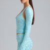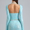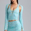 Ruched Mid-Rise Micro Mini Skirt in Ice Blue