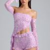 Iconic looks only. Available in two fierce colorways, the Cloe hot pant shorts are designed in our premium 20D mesh fabric and cut to a comfortable mid-rise silhouette. Sweet ruffle trims and all-over light-catching embellishments make them perfect for playful styling.