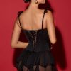 Fantasy meets elevated glamour. A stunning style that’s perfect for creating ethereal looks, the Circe bodysuit is crafted from lustrous satin to a corset silhouette with built-in boning and a sweetheart neckline. It’s framed with adjustable ruffled shoulder straps and features tiers of lightweight chiffon that offer some coverage at the sides and back. It’s complete with an adjustable lace-up back for your perfect fit.