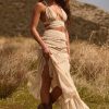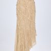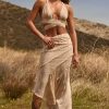 Ruffled Asymmetric Mid-Rise Maxi Skirt in Tan Print