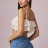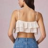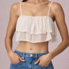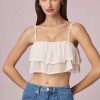 Easy to wear, hard to forget. Crafted from airy chiffon in a perfect spring palette, the Lacie top features a straight neckline, delicate lace trim and layered ruffles that cement the romantic aesthetic. The adjustable camisole straps mean your perfect fit, and the cropped length pairs perfectly with your favourite high-waisted denim or a floaty skirt.