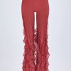 Headline looks. Designed to be worn as seperates or a co-ord with the matching top, the Felicity trousers are crafted from premium, lightweight mesh and cut to a universally flattering mid-rise silhouette. Designed for a figure-hugging fit to the knees, they flare out at the hem and are traced with dynamic ruffles for movement with every step.