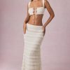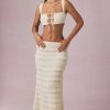 A staple for your spring/summer rotation, the Orena maxi skirt is crafted from premium textured stretch mesh with delicate ruffle detailing throughout. Designed for a mid-rise fit that pairs perfectly with coordinating tops from the collection, it falls to a maxi length with a ruffled hem.