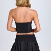 Ruffled Shirred Low-Rise Micro Mini Skirt in Black
