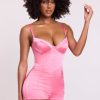 Satin Corset Playsuit in Pink