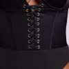 Satin Plunge Neck Lace Up Corset Bodysuit in Black