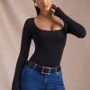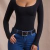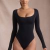 Smoothing, shaping, sculpting. The perfect foundation for any outfit, the Danu bodysuit is crafted from seamless, sculpting knit fabric with a touch of stretch and compressive properties that cinch and sculpt your waist up to one size smaller. It’s cut to a classic long-sleeve silhouette for year-round styling and features thong-back coverage for an undetectable finish when layered under clothing.