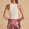 Statement dressing never looked so good. Crafted from premium stretch mesh for a second-skin fit, the Mariste shorts are embellished with scores of sparkling sequins and tactile flower-shaped arrangements. The clean mid-rise waistband makes styling with your favourite tee or tank a dream.