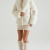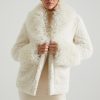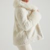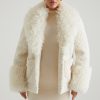 Shearling Coat with Large Front Pockets in Cream