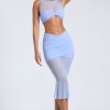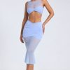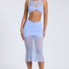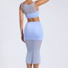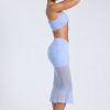 Sheer Panelled Draped Midaxi Skirt in Periwinkle Blue