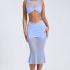 Sheer Panelled Draped Midaxi Skirt in Periwinkle Blue