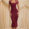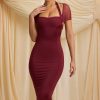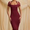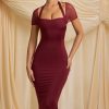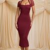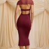 Slinky Jersey Open-Back Midaxi Dress in Wine Red