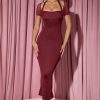 Slinky Jersey Open-Back Midaxi Dress in Wine Red