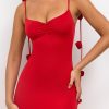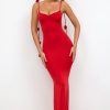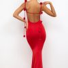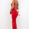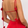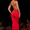 Slinky Jersey Rose Detail Evening Gown in Scarlet Red