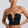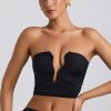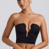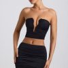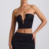 Look to the Morowa top for infallible styling from sunrise to sunset. Rendered in two versatile hues, it’s crafted from our slinky jersey fabric and delicately ruched to achieve a universally flattering fit. The strapless silhouette is uplifted with custom-developed hardware that supports the plunging, irregularly shaped neckline.
