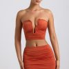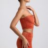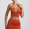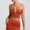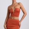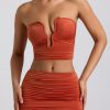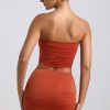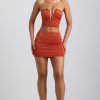Slinky Jersey Ruched Micro Mini Skirt in Burnt Orange
