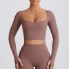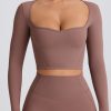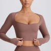 Soft Active Sweetheart-Neck Crop Top in Mocha
