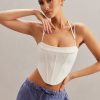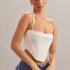 Take your cargo trousers from day to night with the ultra flattering Centaine corset top. Designed in our super soft jersey lined fabric, the Centaine corset features super supportive boning through the bodice and under the bust for a flattering and reliable fit. The bust flattering square neckline and delicate shoulder straps add delicate detailing to this statement style whilst the angled hemline works to cinch your waist. Complete with an open back lace up corset, this classic corset is the ultimate embodiment of on trend styling and reliable support.
