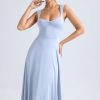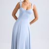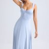 Sweetheart-Neck Ruched Midaxi Dress in Light Blue