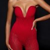 Sweetheart-Neck Warp-Knit Bodysuit in Fire Red