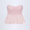 Dreamy and off-duty, the Alma crop top is crafted from lightweight and breezy cotton poplin to a bandeau silhouette with partially lined cups for enhanced coverage and features a smocked panel at the back for a comfortable fit. It features gathered detailing at the front and adjustable ties for multiple styling options.