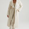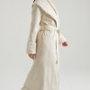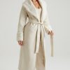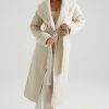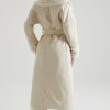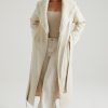 Tie Up Coat with Shearling Collar and Cuffs in Cream