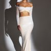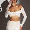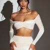 Velvet Off The Shoulder Ruched Crop Top in Ivory