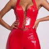 Steal the scene. Designed in our premium light vinyl fabric thats fully lined for a comfortable fit, the Ophelia corset crop top features a bust-flattering halter neckline and seductive lace up front. Complete with built-in corset boning for a supported and cinched silhouette.