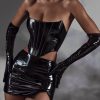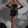 Vinyl Thigh Split Micro Mini Skirt in Black