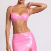 Sultry separates. Super short and figure-hugging, the Nyx mini skirt is designed in our premium vinyl fabric thats high shine and high impact. Leg-lengthening with an alluring front split, this statement separate is complete with body-contouring panelling and a high waistband.
