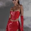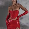 Vinyl Thigh Split Micro Mini Skirt in Red