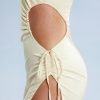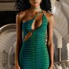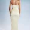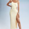Decadent, premium and luxurious. The Behati satin maxi dress features an embellished crystal shoulder strap, an asymmetric neckline and an adjustable cut-out at the waist. The seductive thigh-split starts at the hip and runs along the length of the dress.