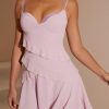 Asymmetric Multi Strap Ruffle Detail Mini Dress in Blush