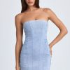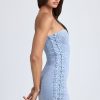 New-age denim. A fresh take on classic moto styles, the Daylin mini dress is elevated with quilted panelling and shaping seams that create a contoured finish. It’s cut from premium stretch denim to a fully lined A-line silhouette and enhanced with signature adjustable lace-up detailing at each side.