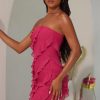 The statement silhouette you know and adore, now in a mini length. Designed in our soft and smoothing stretch jersey fabric, the Tatiana mini dress features a bandeau neckline and romantic ruffle detailing.