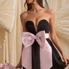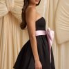 Made for your wow moment, the Norina mini dress is crafted from lustrous and lightweight non-stretch satin to a classic strapless silhouette with a fitted corset bodice for enhanced support and a voluminous organza skirt. In keeping with the festive theme, it’s embellished with a stunning oversized bow that can be detached for multiple styling options.