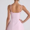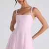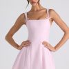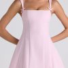 A whimsical silhouette designed for sun-kissed days. Crafted from a woven stretch fabric that contours to your curves, the Cressida mini dress is a sweet design that’s underlaid with a contrasting pleated georgette skirt. Available in two standout hues, it’s cut to an A-line silhouette with shaping princess seams, a Bardot scoop neckline, and adjustable shoulder straps with functional rouleau ties.