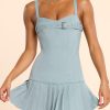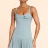 New season silhouettes. A statement day-to-night piece, the Clover mini dress is a tailored design crafted in our brushed twill fabric for a fitted and flattering look. Complete with a detachable belt design at the neckline and a dropped waist with kilt mini skirt.